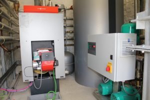 The installed system provides three fully weather compensated heating circuits and one constant temperature circuit for under-floor heating. One cylinder loading circuit with controls operates the heating and hot water and also the secondary hot water circuits. A welcome benefit of the advanced Vitotrol 300A controls is that AHS can monitor the system remotely on behalf of its client.